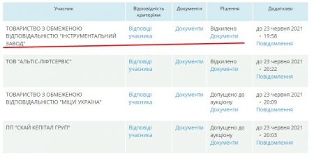 Крім того, подана скарга на те, що замовник допустив до аукціону дві пов'язані компанії, що є порушенням Закону України «Про публічні закупівлі». За твердженням ТОВ «Інструментальний завод», ТОВ «Міцуї Україна» та ПП «Скай Кепітал Груп» є дилерами одного виробника - компанії Hanson Lift (Suzhou) Cо (Китай). При цьому подали ідентичні листи від цієї компанії в складі тендерних пропозицій. Дана скарга очікує рішення замовника.