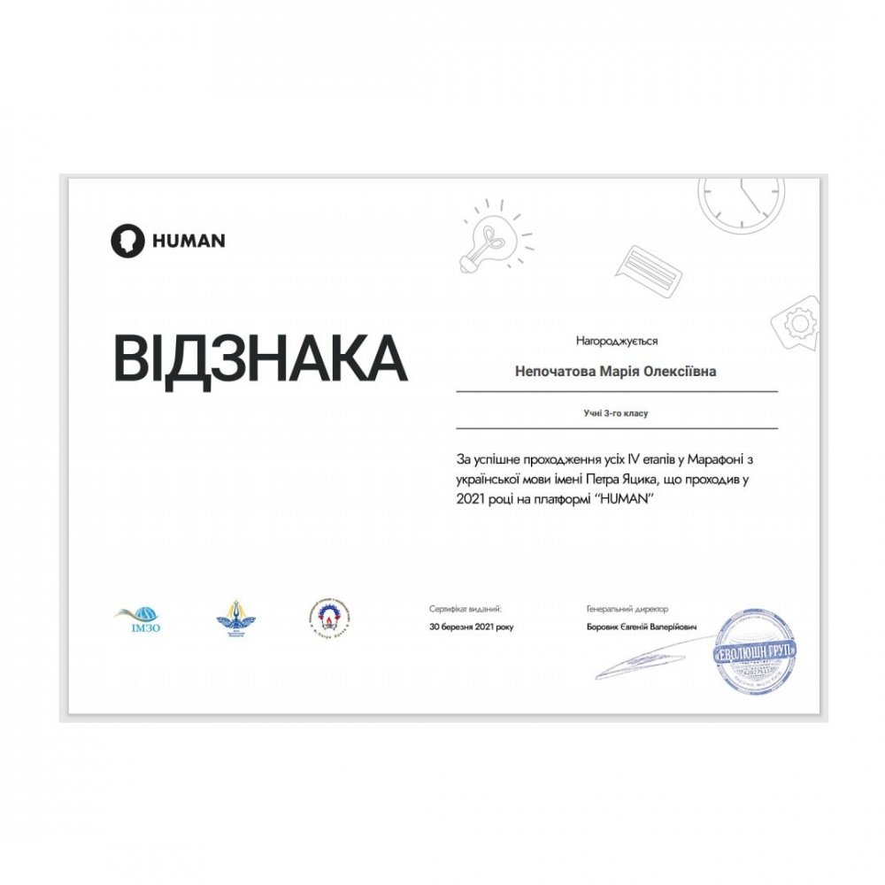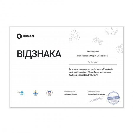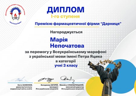Кременчужанка Марія Непочатова, яка навчається у Кременчуцькому ліцеї №4 «Кремінь», зайняла перше місце серед третіх класів у Всеукраїнському відкритому марафоні з української мови імені Петра Яцика*.