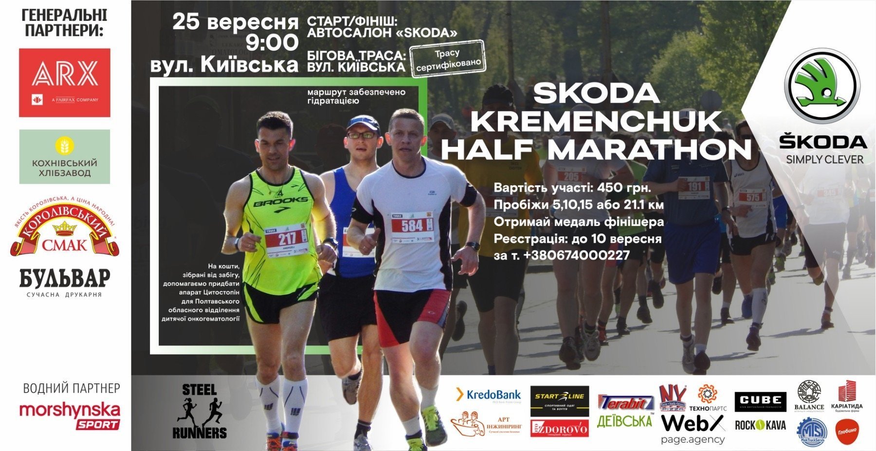25 вересня у Кременчуці відбудеться благодійний забіг. Розпочалася реєстрація на благодійний забіг Skoda Kremenchuk Half Marathon. Реєстрація проходить на сайті Steel Runners.