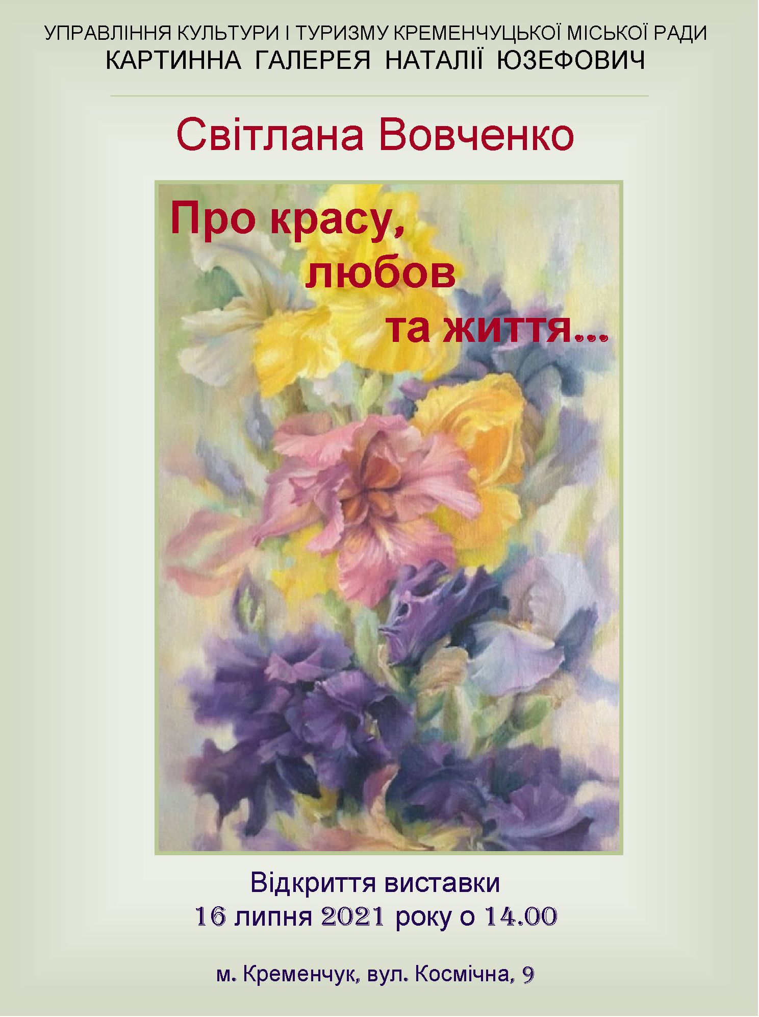 16 липня о 14.00 в картинній галереї Наталії Юзефович відкривається персональна виставка кременчуцької художниці Світлани Вовченко.