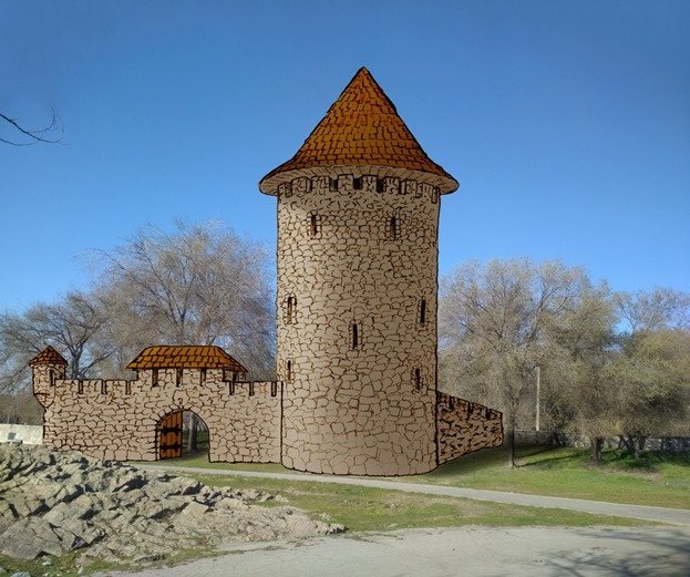 *«Вітовтова вежа» — єдина збережена оборонна споруда часів литовського панування біля сіл Козацьке і Веселе, що на Херсонщині. Збудована наприкінці XIV століття, а наприкінці XIX ст. відреставрована власником місцевої садиби Трубецьким.