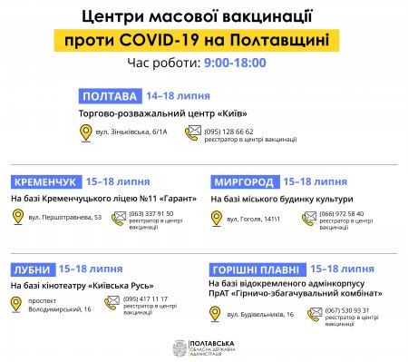 У пресслужбі Полтавської облдержадміністрації оновили інформацію щодо того, як записатися на вакцинацію проти COVID-19: