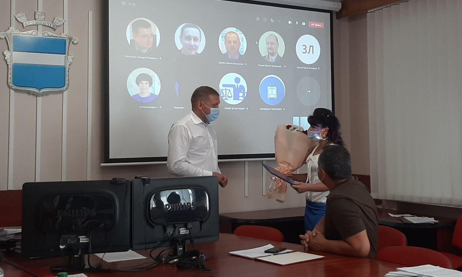 На засіданні виконавчого комітету Кременчуцької міської ради відзначили грамотою та квітами медичного працівника Потоківської амбулаторії Віталію Цему.
