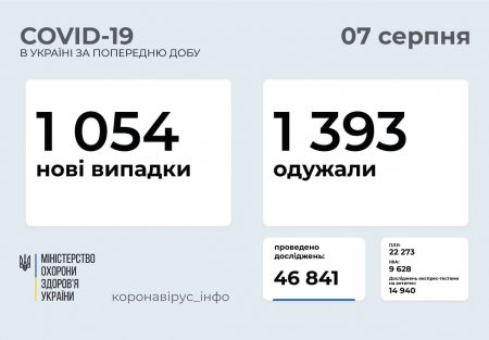 Усього в Україні за минулу добу виявили 1 054 нові випадки COVID-19. Зокрема, захворіли 72 дитини та 13 медпрацівників.