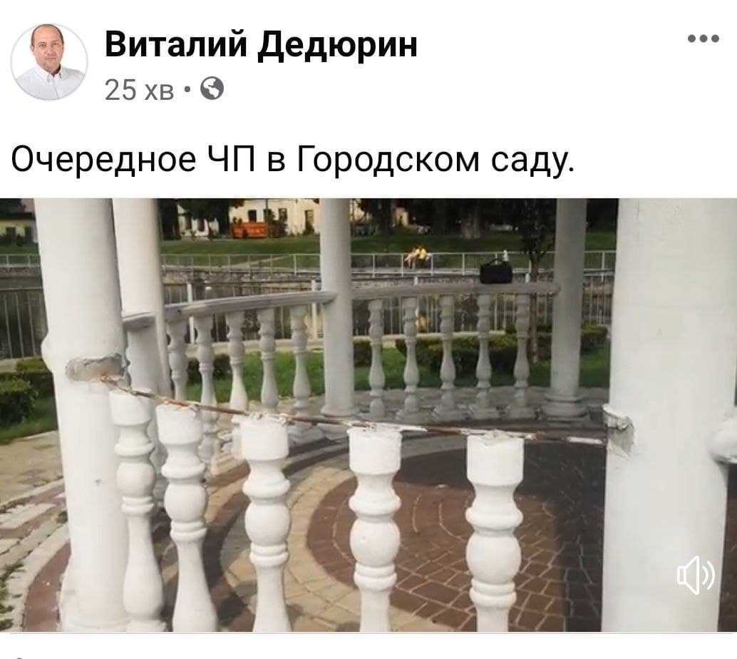 Вночі 7 серпня вандали частково зруйнували альтанку, котра була справжньою перлиною «?Міського саду»?. Про це повідомив виконуючий обов’язки директора парку Віталій Дедюрін на своїй Facebook-сторінці.