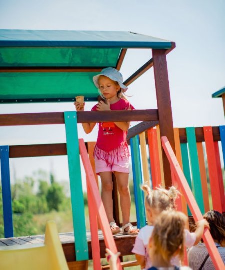 Сергій Радченко повідомив, що основні матеріали з яких зроблений дитячо-спортивний майданчик - це дерево, пластик та мотузки.