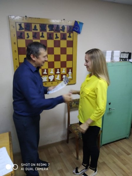 турі, наздогнавши колегу з ЦНАП Олександра Швеця, але цього було замало, бо в особистій зустрічі переміг Олександр, ставши третім. Перемогла ж у шашкістів Лілія Бабіч з команди Крюківської районної адміністрації (на фото), на пів очка випередивши також Бабич, але вже Ірину, представницю команди Автозаводської районної адміністрації.