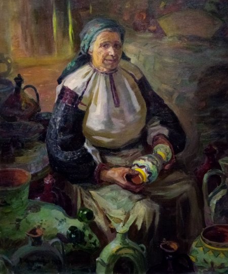 Серед робіт – портрет майстрині косовської кераміки Павлини Йосипівни Цвілик, яка належить до числа видатних майстрів українського народного декоративного мистецтва, 1959 р.