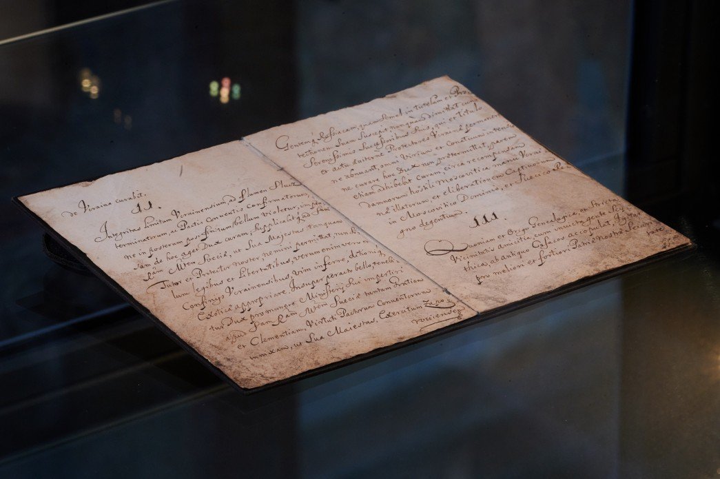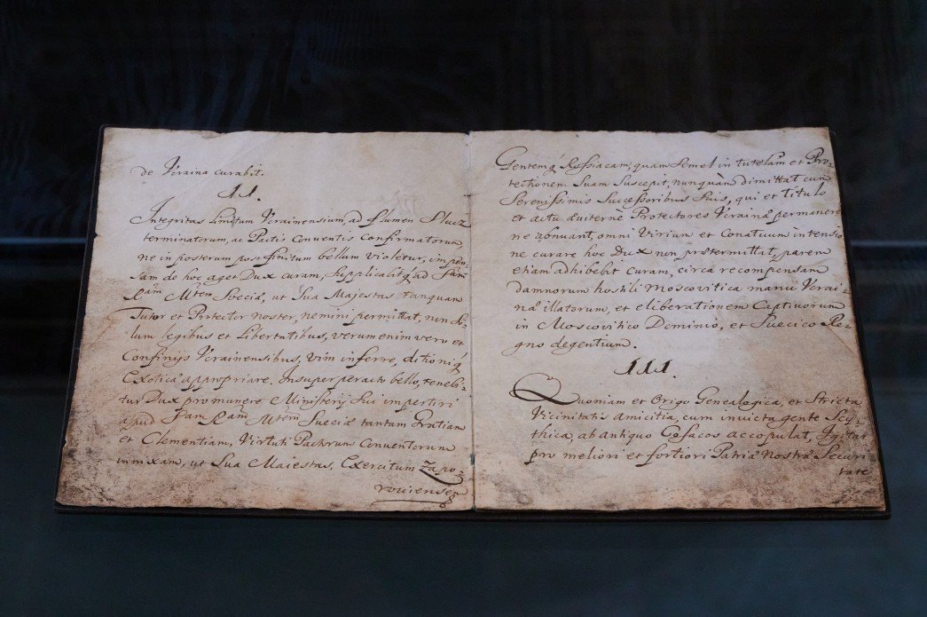 Документ експонують в Софійському соборі в Києві з 16 серпня до 14 листопада 2021 року. Крім рукопису виставлена «булава, яка, за легендою, належала Пилипові Орлику і гетьманові Івану Мазепі, з Лінчопінгської міської бібліотеки (місто Лінчопінг, Швеція)».