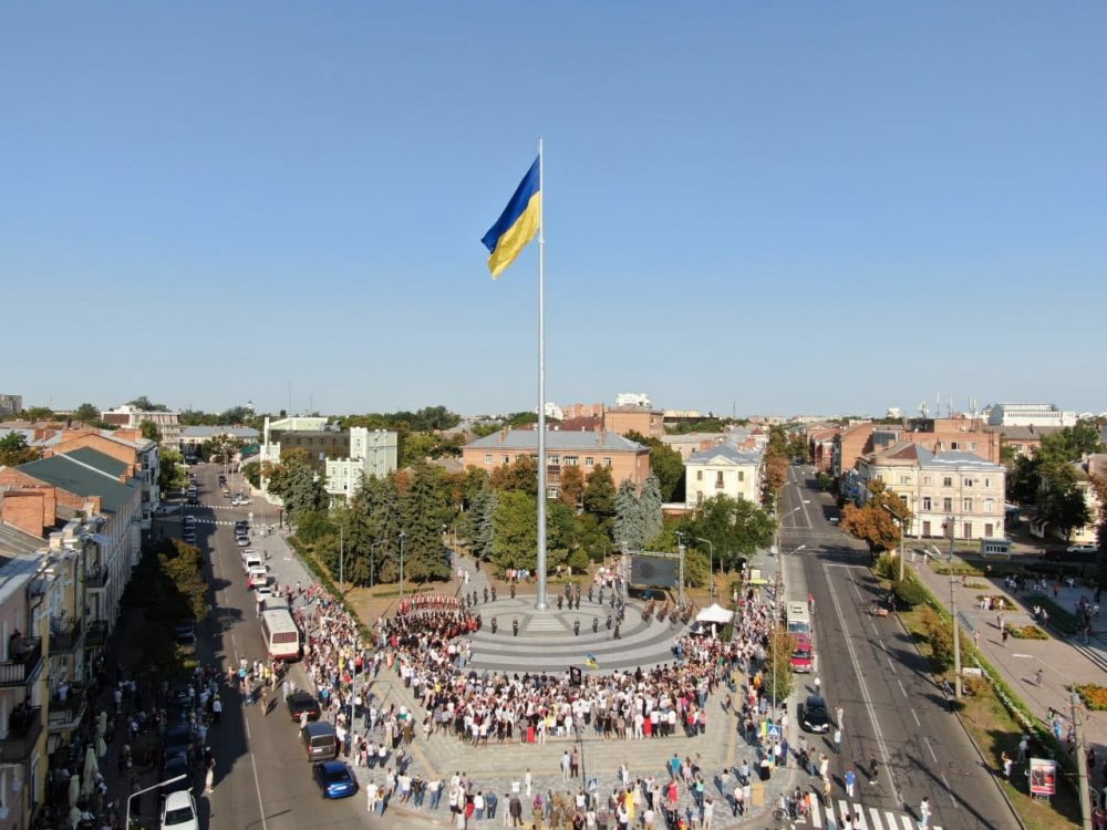 У Полтаві замайорів найбільший український прапор в області. Піднімали його синхронно, разом з іншими регіонами.