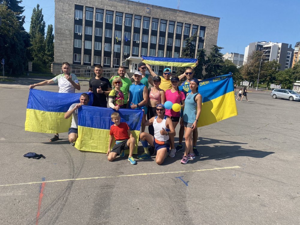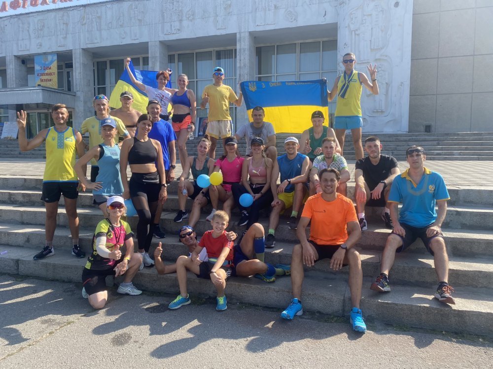 Спортсмени у «жовто-блакитній» символіці бігли центральними вулицями міста й вигукували: «Слава Україні!», «Героям Слава!».
