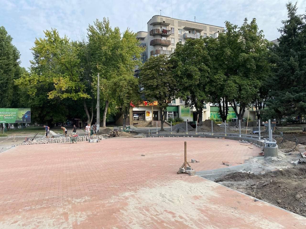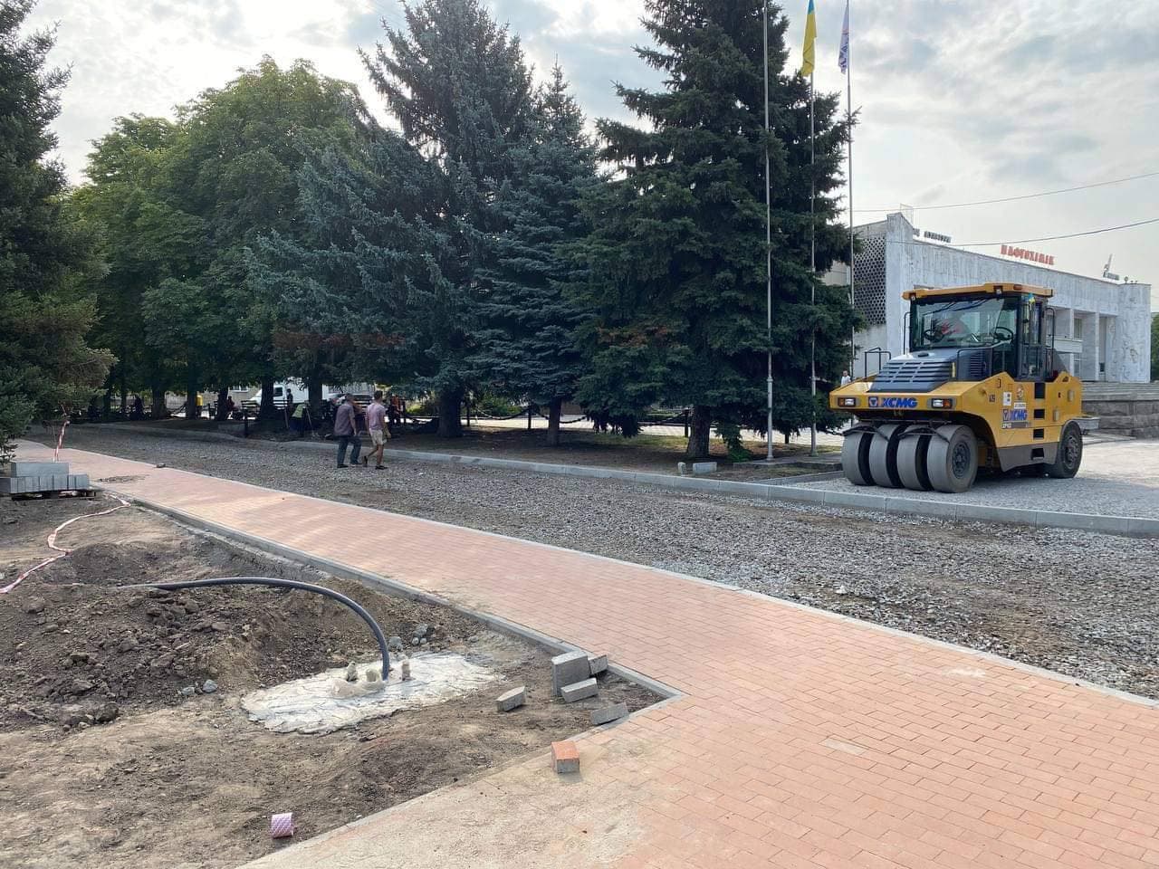 Наразі на локації укладають плитку на тротуарі і доріжках, упорядковують газони, проводять заміну асфальту біля скверу та по провулку Грозненському.