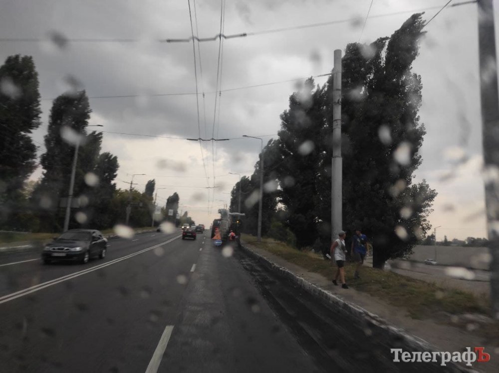 Читач надіслав до редакції фото, як на Пивзаводівському шляхопроводі дорожникам довелося працювати в негоду.