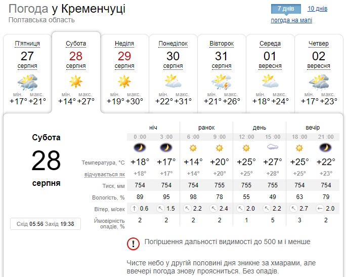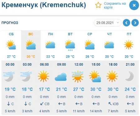 Останні вихідні цього літа будуть по-справжньому спекотні, наприклад, у неділю температура сягне 30 градусів зі знаком «плюс». У Кременчуці триматиметься сонячна погода, тож якщо ви хочете встигнути на пляж у цьому сезоні, у вас ще є шанс. До речі, гаряче та сонячно буде і у понеділок, а от потім осінь візьме своє – і більше +25°С у вересні чекати не доведеться.
