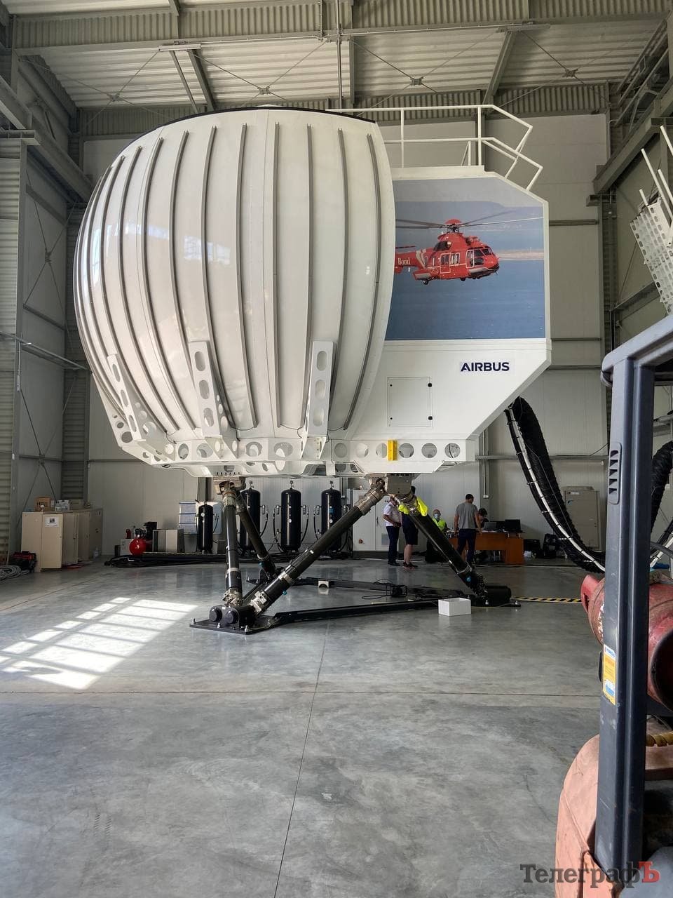 1 вересня крім аеродрому Кременчуцького льотного коледжу ХНУВС «Телеграфу» показали ще й повнопілотажний симулятор Н225 виробництва Airbus Helicopters. На сьогодні таких тренажерів в світі 5, і один з них – у нашому місті.