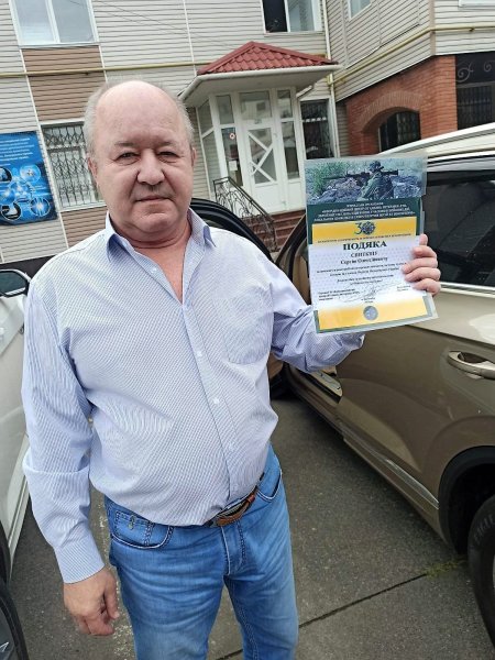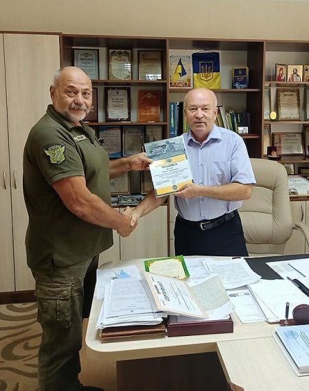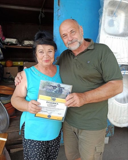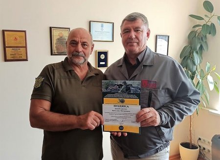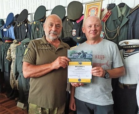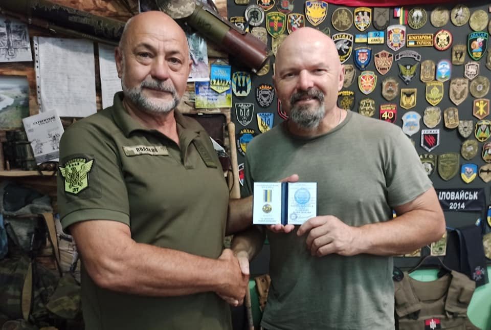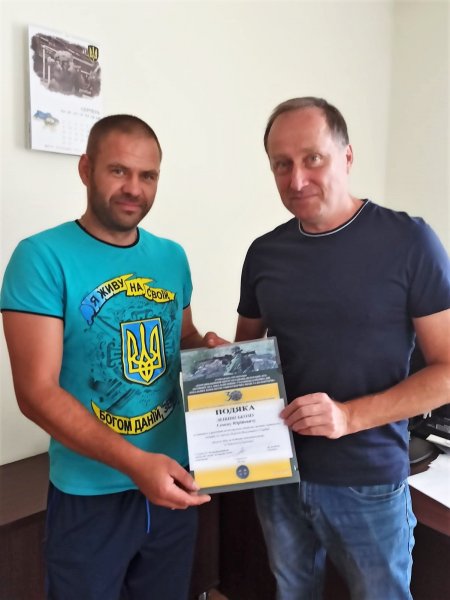 Волонтерство і благочинність не повинні залишатись непоміченим. На фото видавець ВД Приватна газета (Телеграф, Приватна газета, Для дому та сімї) Сергій Кулясов та боєць Василь Онищенко