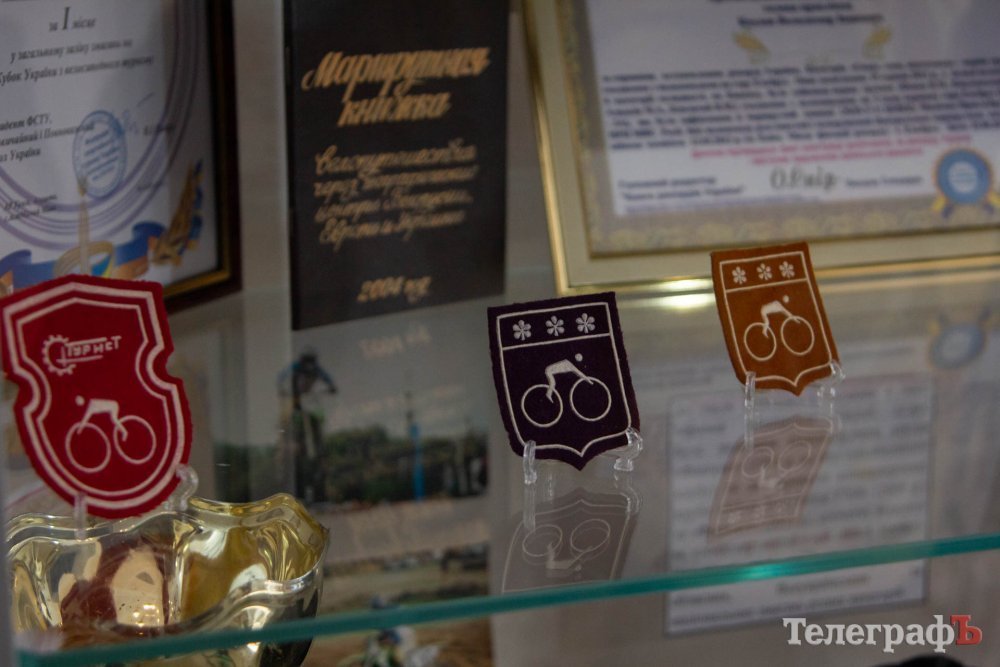 Серед представлених експонатів є нашивки, які розробляв легендарний велотурист-одиночка Анатолій Бакуменко. Він об’їхав на своєму велосипеді майже всю Євразії, навіть за рік до смерті подорожував Дніпром.