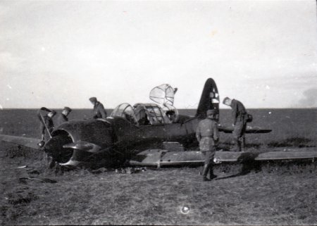 Радянський бомбардувальник СУ-2, збитий неподалік Кобеляк. Чи не його бачив 11 вересня Я.М.Романко? Фото із зібрання М. Милько. Публікується вперше