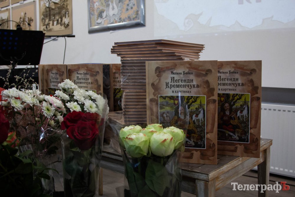 Для гостей мистецького вечора Оксана Бойко презентувала свою книгу «Легенди Кременчука в картинах», яка вийшла тиражем у 1000 екземплярів. Наприклад, там є легенда про богиню родючості Дею, яка прилетіла на Деївську гору і наділила кожну рослину у тамтешньому лісі магічною силою. Або розповідь про дівчину, яку односельці втопили в озері, бо думали, що вона – відьма. А вона перетворилася на щуку і щоночі на повний місяць припливала до човна свого коханого-рибалки.