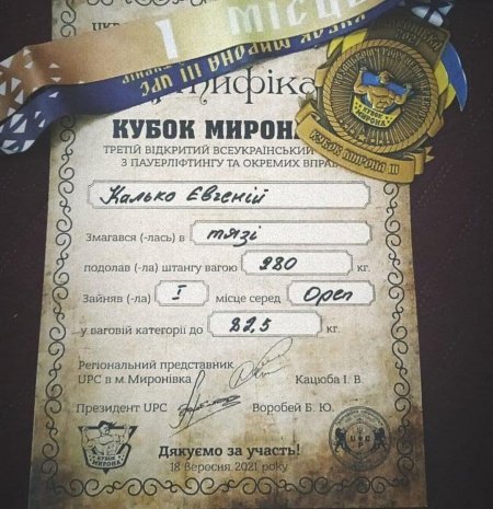 18 вересня відбувся 3-й Всеукраїнський турнір з пауерліфтингу та окремих вправ Кубок Мирона, у якому змагався кременчужанин Євгеній Калько. Змагання проходили у Миронівці, що під Києвом.