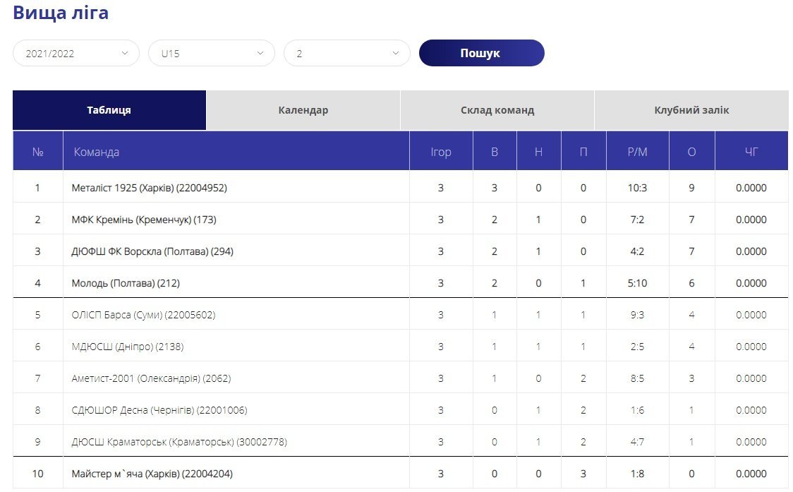 Цими вихідними відбувся 3-й тур Дитячо-юнацької футбольної ліги України у Вищій лізі, де грають кременчуцькі команди «Кремінь». Наші хлопці здобули три перемоги та розписали одну мирову на виїзді. За один тур «синьо-білі» здобули 10 очок, це поки найкращий показник з початку чемпіонату.