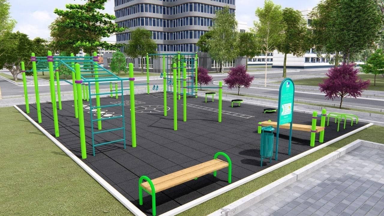Кожен спортмайданчик матиме наступний набір тренажерів та інших об’єктів: