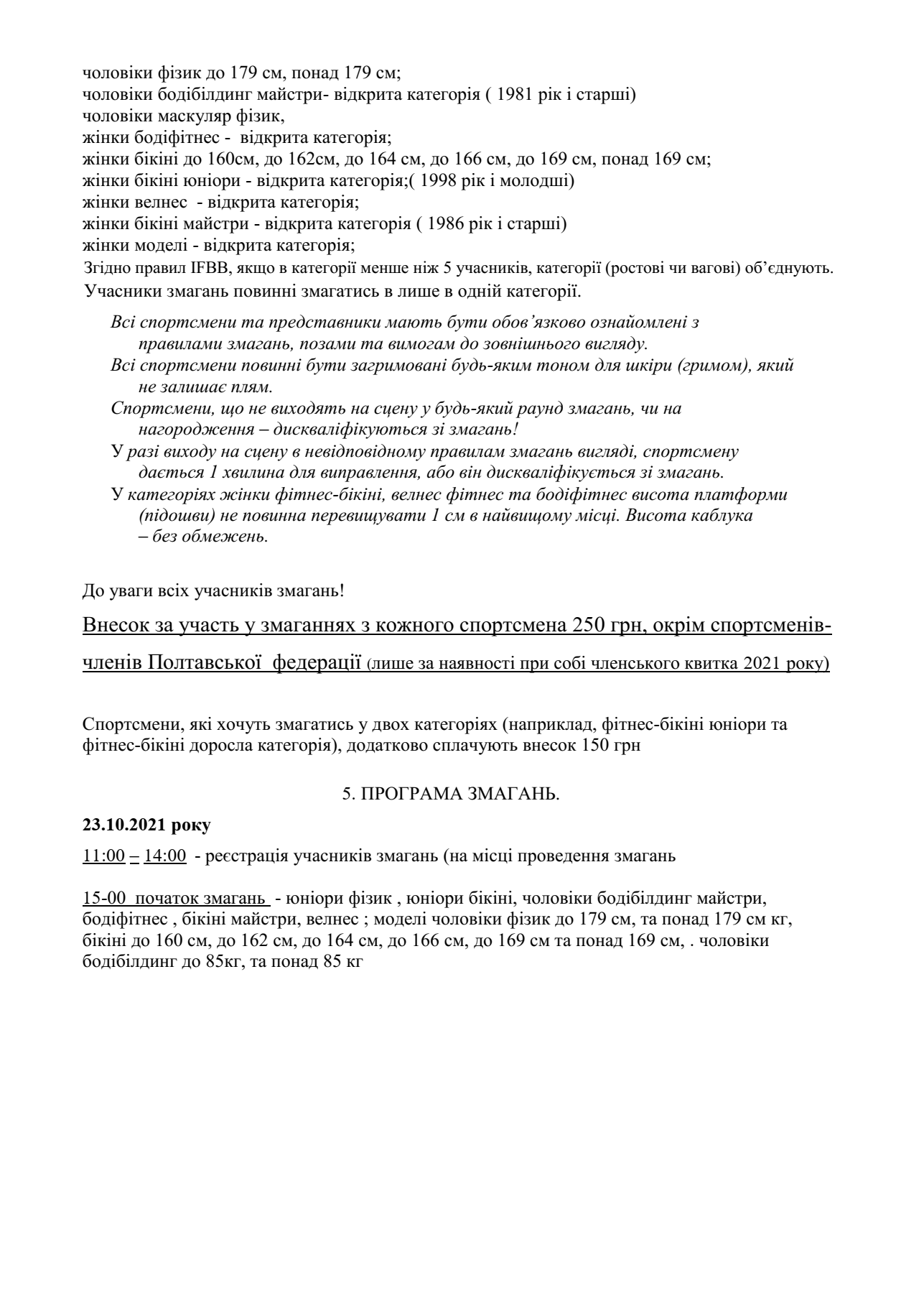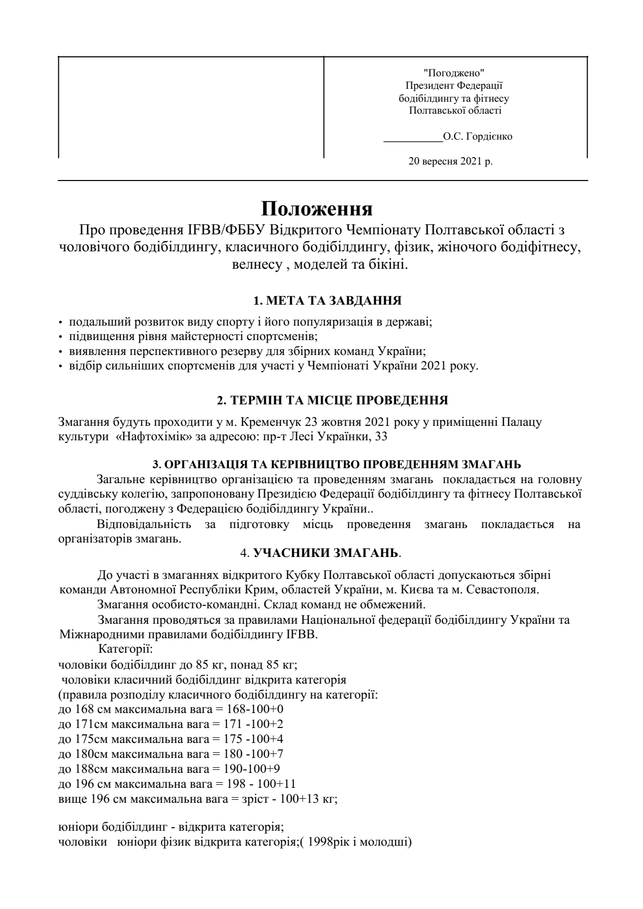 23 жовтня у Кременчуці відбудеться чемпіонат Полтавської області з бодібілдингу та фітнесу. Змагання о 15.00 розпочнуться в палаці культури «Нафтохімік».