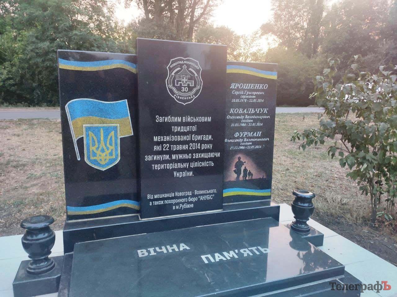 Пам’ятник загиблим українським військовим 30 механізованої бригади
