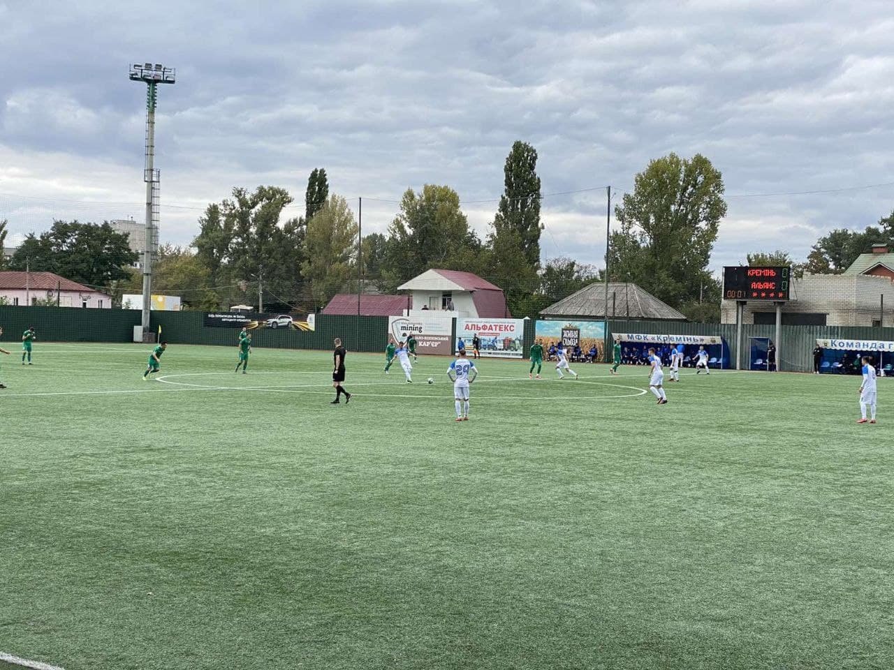 На перших хвилинах матчу «Альянс» пішов у наступ, проте удар Агапова заблокували захисники «Кременя». До середини тайму гра вирівнялася й «Кремінь» більше став володіти м’ячем. Чудовий момент мав Галоян, який виходив на побачення з воротарем сам на сам, але воротар «Альянсу» зіграв на випередження. До перерви господарі поля провели кілька масованих атак, але змінити рахунок на табло так і не вдалося.