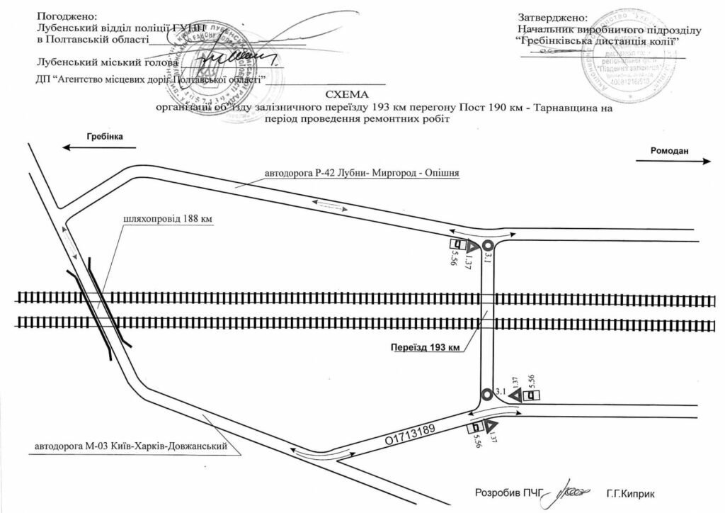 Виробничий підрозділ «Гребінківська дистанція колії» планує ремонт залізничного переїзду 193 км перегону Пост 190 км – Тарнавщина.