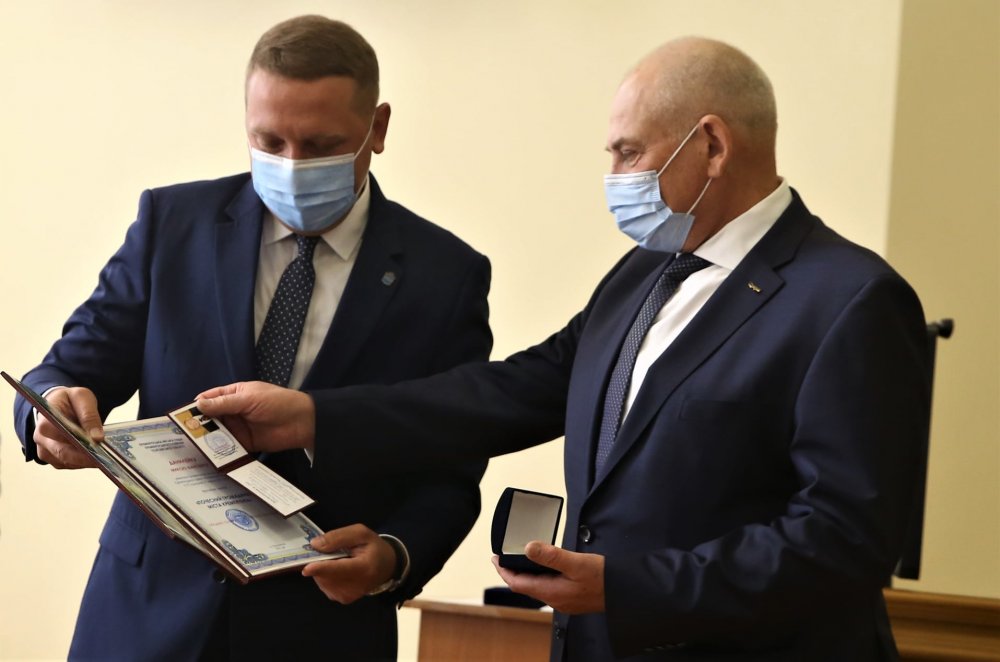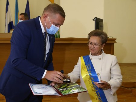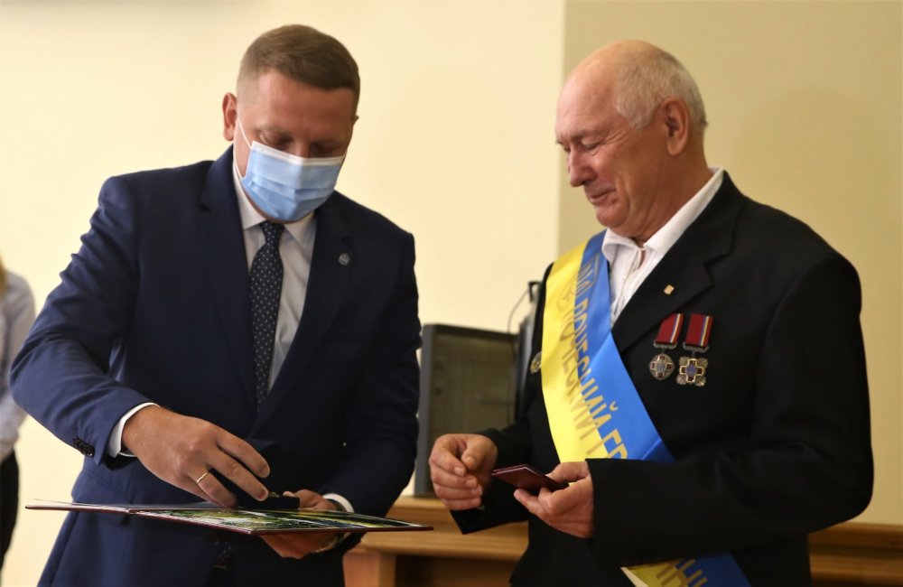Міський голова Кременчука Віталій Малецький вручив Почесним громадянам посвідчення, нагрудні знаки та жовто-блакитні стрічки з написом Почесний громадянин. На фото (зліва): Микола Глухов, Микола Данилейко, Тетяна Матицина, Олександр Лукацький, Володимир Смоляков