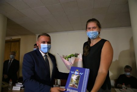 На сесії Кременчуцької міської ради почесний знак «За заслуги перед містом» отримала дзюдоїстка Єлизавета Каланіна.