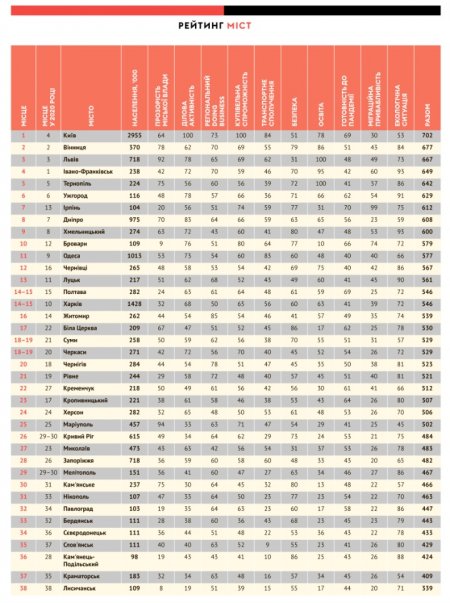 Полтава залишилася на тому ж 15-му місці, що і минулого року, а ось Кременчук підріс аж на 5 сходинок - з 27 місця на 22. Поруч з нами - Рівне і Кропивницький.