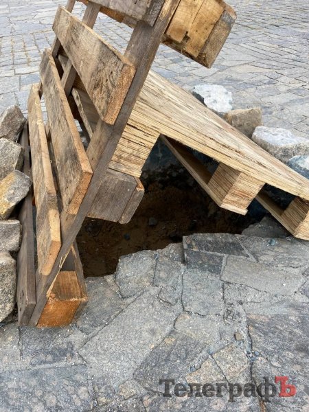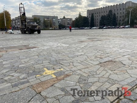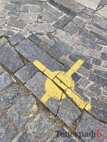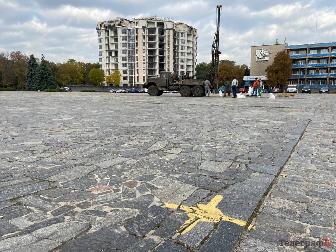 На площі залишилися жовті мітки, які показують розташування майбутнього храму.