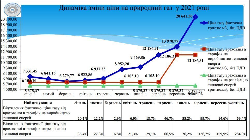 Головною причиною зростання тарифів на КремТЕЦ називають чергову зміну ціни на газ: якщо для потреб населення вона фіксована, то для бюджетних організацій, релігійних споживачів змінюється і невпинно росте, це ми бачимо на діаграмі.