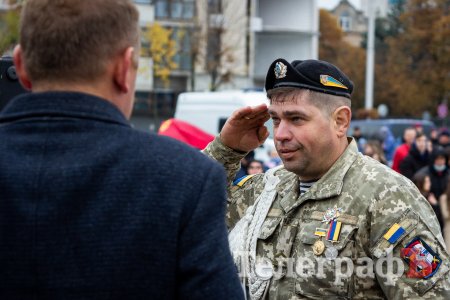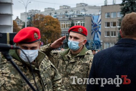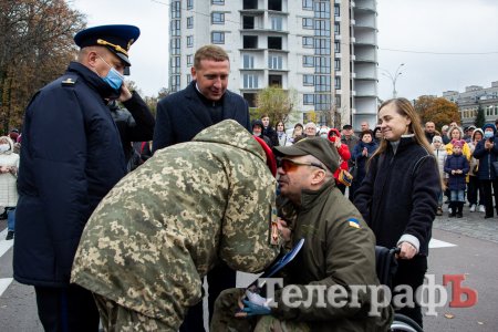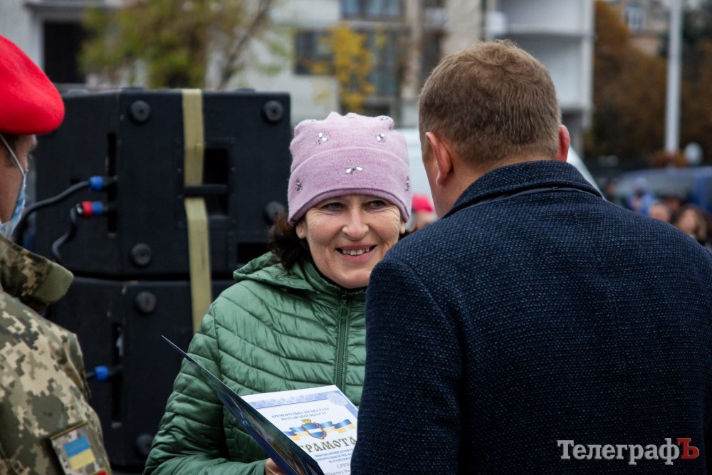 На площі Перемоги, після військового мару, відбулися урочистості за участі міського голови Віталія Малецького, командира військової частини А-1546 полковника Олександра Келембета та командира Кременчуцького батальйону Національної Гвардії України Олега Довголюка. Вони вручили відзнаки та нагороди українським захисникам. Нагороди отримали як захисники, захисниці та волонтери.