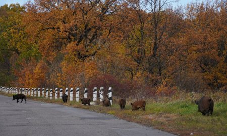 На шляху до Більського городища із лісу на трасу повибігали дикі кабани.