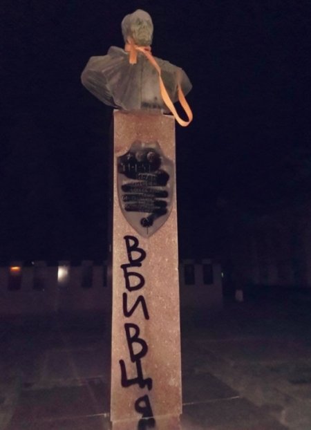Водночас у Хоролі на бюсті радянського генерала Івана Третяка, відповідального за збиття пасажирського "Боїнга" у 1983 році, написали слово "вбивця".