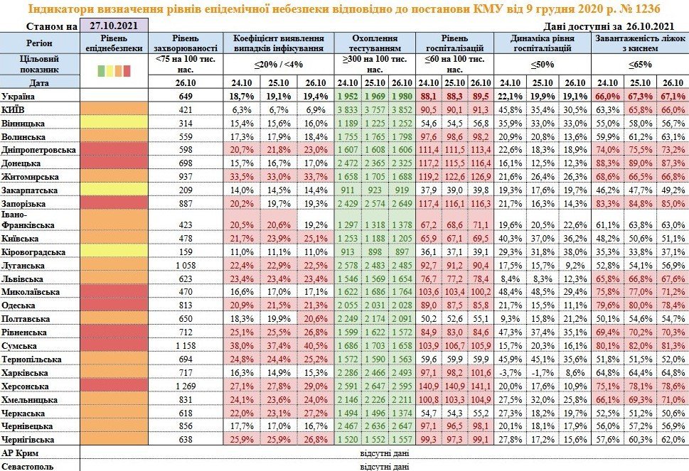 Станом на 27 жовтня Полтавська область опинилася у «помаранчевій» карантинній зоні. Відповідну інформацію опублікували на офіційному сайті Міністерства охорони здоров’я України.