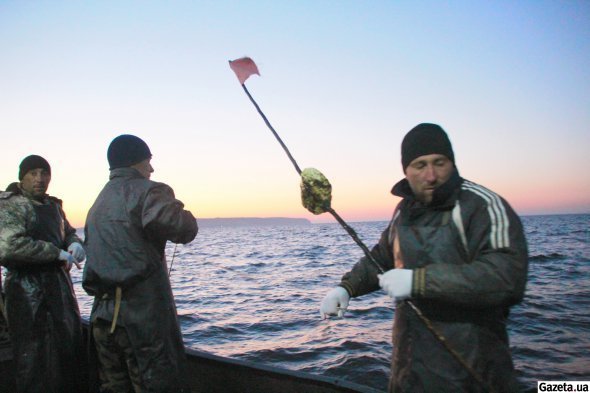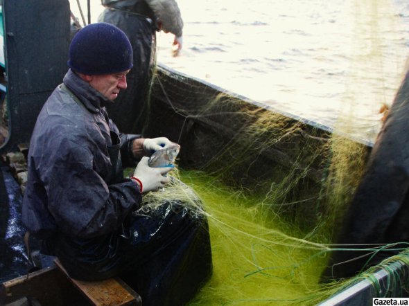 – Було, що у нас покрали сітки — лишили самі “махалки”. Років сім тому таке часто траплялося. Останнім часом — рідко. Могли одну-дві лаву (поєднані сітки довжиною по 70 м кожна. – Gazeta.ua) вибрати. Ми бачили їх, але за руку ж не вхопиш. Наше судно має швидкість 13 кілометрів на годину, а легкий моторний човен — йде по 70-80 кілометрів, – каже один із чоловіків.