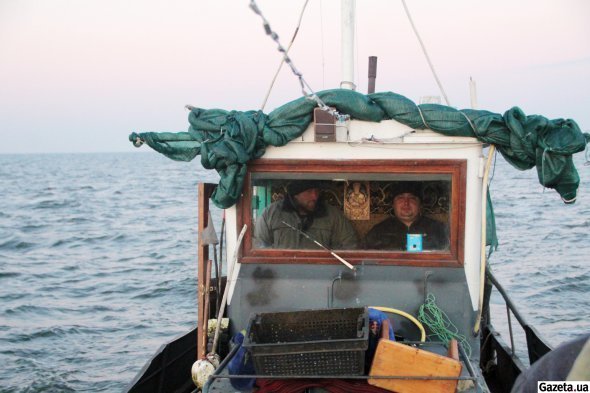 – Треба обробити знаряддя лову – сітки. Можемо зробити це за дві години, а інколи — за шість. Буває по-різному. Залежить від того, скільки риби в сітках, – долучається до розмови Валерій Опришко. Працює на судні ланковим – відповідальним за промисел. Йому підпорядковується екіпаж з трьох-чотирьох людей. – Буває, що на декілька днів ідемо в море — залежить від погоди і риби. Економимо паливо. А як інакше — спалить 60 літрів солярки туди-сюди і без риби приїхати? На катері є все необхідне: кубрик та камбуз (житлове приміщення та місце для приготування їжі на судні. – Gazeta.ua).