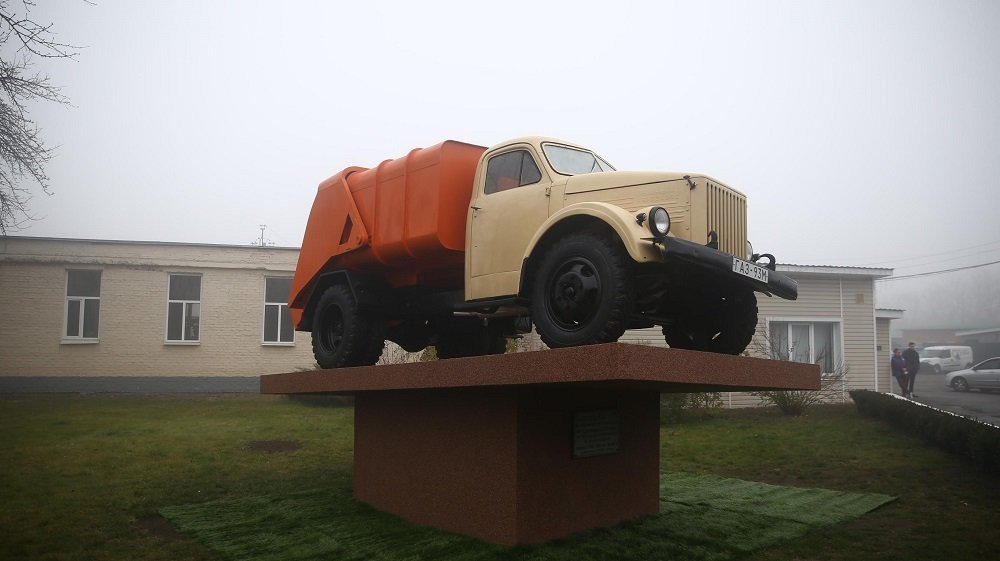 До Дня автомобіліста та на честь працівників КП «Кременчуцьке КАТП 1628» офіційно відкрили пам’ятник найстарішому сміттєвозу. Напередодні його встановили на базі комунального підприємства «КАТП-1628» на п’єдестал.