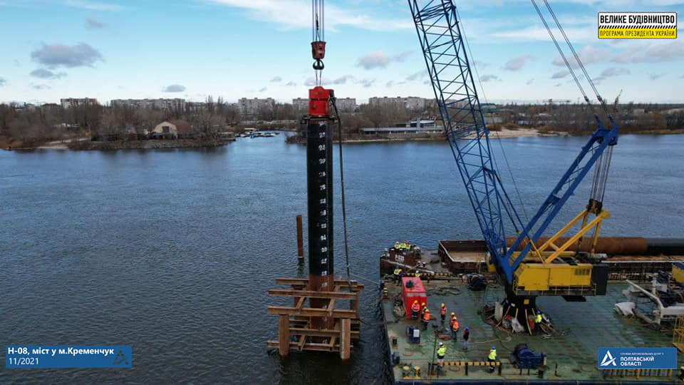 Розпочалося будівництво пілонів майбутнього мосту через Дніпро у Кременчуці. Про це повідомляє Служба автомобільних доріг у Полтавській області.