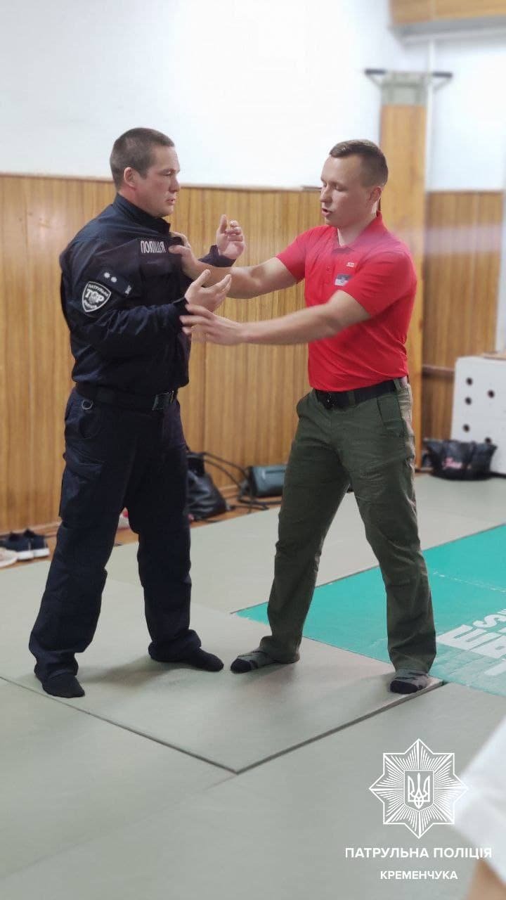 Інспектори патрульної поліції Кременчука провели заняття, під час якого інспектори надали дієві поради з прийомів самооборони. Навчання проводили сертифіковані інструктори патрульної поліції Антон Герко та Максим Журба.