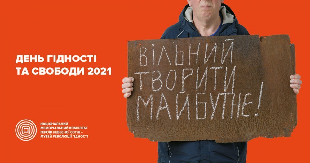 Інформаційна соціальна кампанія до Дня Гідності та Свободи у 2021 році відбувається під гаслом – «Вільні творити майбутнє», розробленим та запущеним Національним музеєм Революції Гідності й Міністерством культури, молоді та спорту України у 2019 році.