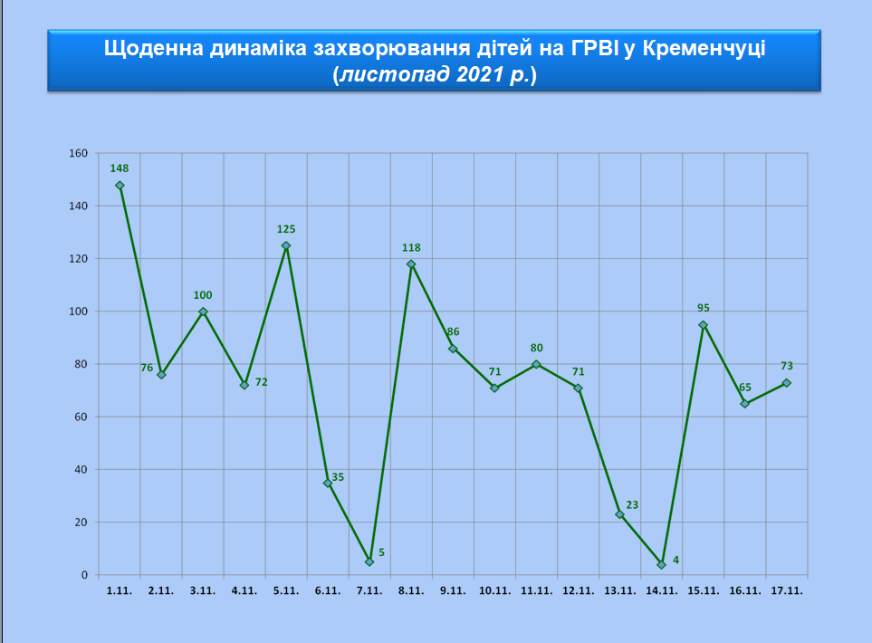 Знизилася дитяча захворюваність: у жовтні щоденно надходило до 223 звернень зі скаргами на ГРВІ, 1 листопада – 148, 17 листопада –73. На початку жовтня зафіксували 930 випадків ГРВІ у дітей за тиждень, а на цьому тижні – 333, тобто втричі менше. У мерії вважають, це тому, що діти з 25 жовтня були на дистанційному навчанні, а отже значно менше спілкувалися між собою.