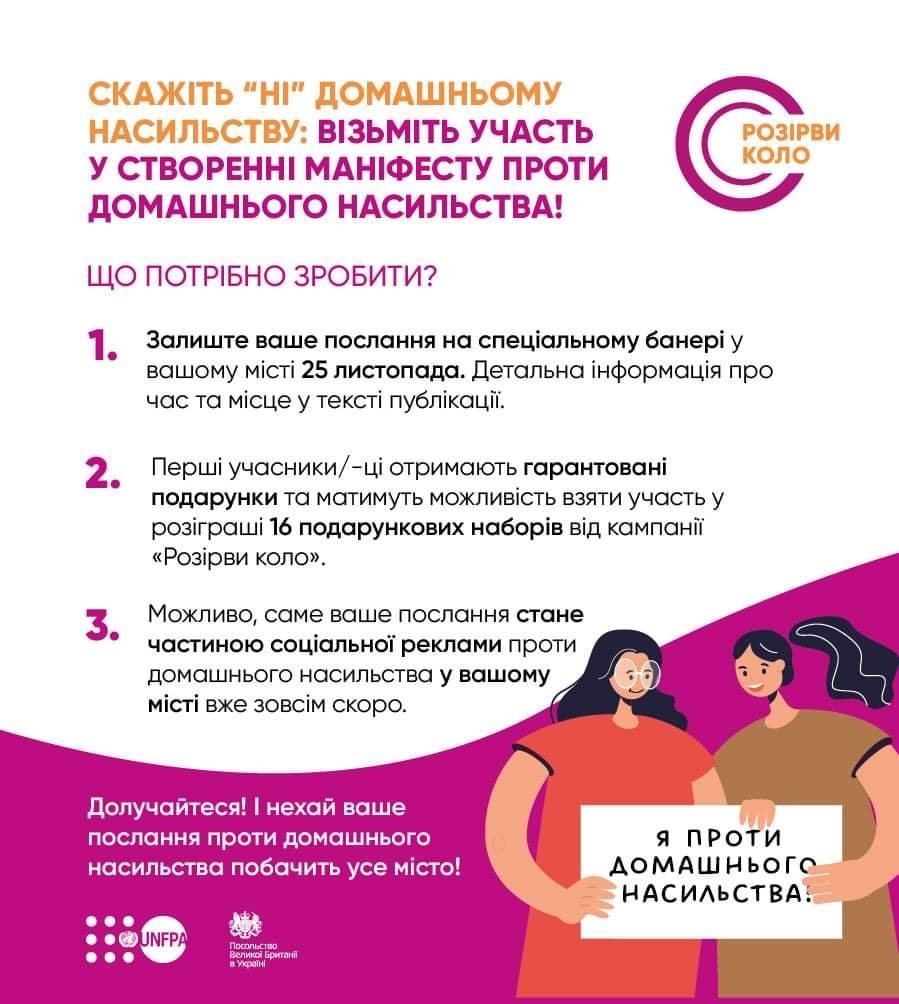 25 листопада з 14.00 до 16.00 в сквері ім. Бабаєва напиши слова підтримки постраждалим від домашнього насильства, побажання чи заклик до боротьби з насильством і твоє послання з’явиться на бордах усього міста.