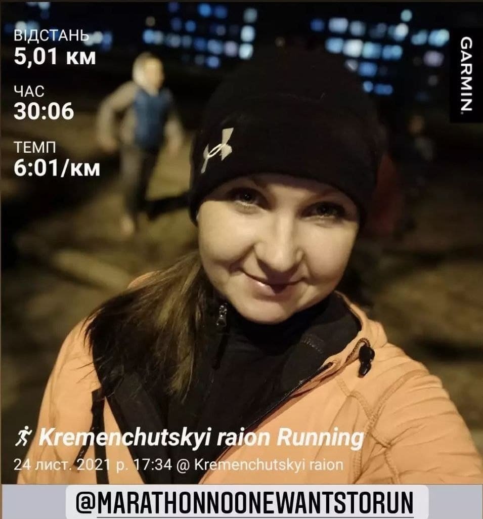 Марина Матвієць – зв’язківець у 107 Кременчуцькій реактивній артилерійській бригаді. Дівчина активно займається спортом й цього разу пробігла кілька дистанцій, одну з яких присвятила загиблому на передовій військовому.
