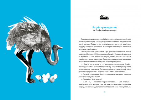 Наприкінці ХІХ століття барон Фальц-Фейн заснував на півдні України заповідник «Асканія-Нова». Невдовзі настали буремні часи: зміни влади, розгул банд у степах, непевність. Саме тоді дівчинка Стефа вирушає в Асканію разом із батьком-біологом — і опиняється у вирі подій. Ця книжка — про захопливі пригоди посеред унікальної флори й фауни на складному історичному тлі. Та насамперед — про зближення з природою, пізнання себе й рідних і про те, як із неприйняття народжується віддана дружба.