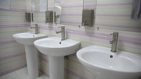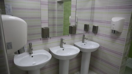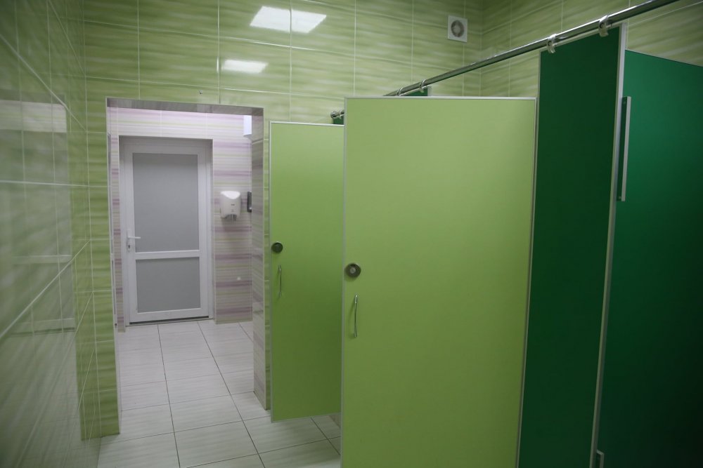 У новій вбиральні всі кабінки окремі та мають дверцята, є гаряча вода, рідке мило та електричні сушарки для рук, а вікна для безпеки дітей зачиняються на замки.
